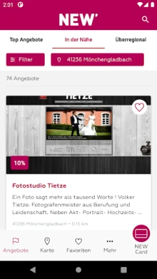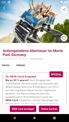 Objavte svet exkluzívnych výhod a úspor s vašou NEW Card! Či už hľadáte lákavé lokálne zľavy vo vašom regióne alebo rozsiahle celonemecké ponuky, táto aplikácia je vašou neoddeliteľnou bránou k výhodným cenovým zvýhodneniam. S NEW Card získate prístup k špeciálnym ponukám, ktoré vám spríjemnia každý deň a uľahčia rodinný rozpočet. Jednoducho predložte svoju NEW Card u našich partnerských predajcov pri pokladni, alebo si rezervujte vstupenky vopred s okamžitou úsporou – všetko pohodlne a prehľadne.