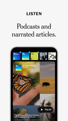 Ponorte sa do bohatej škály obsahov, ktoré presahujú tradičné správy. Vychutnajte si podmanivé videá s reportérmi a odborníkmi, alebo si vypočujte renomovanú zvukovú žurnalistiku vrátane denných podcastov ako „The Daily" a „The Headlines". Objavte širokú paletu tém od umenia, kultúry a módy, cez vedu, technológiu a zdravie, až po inšpiratívny životný štýl s podcastmi ako „Modern Love". Obsah si môžete ľahko ukladať a prostredníctvom personalizovaných odporúčaní objavovať nové príbehy presne podľa vášho vkusu a histórie čítania.