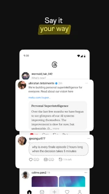S Threads je vyjadrenie vlastného názoru jednoduchšie ako kedykoľvek predtým. Začnite nové vlákno a premeňte svoje myšlienky na pútavú konverzáciu. Máte plnú kontrolu nad tým, kto sa môže do diskusie zapojiť, čo zaručuje bezpečné a autentické prostredie pre vaše príspevky. Využite plynulé prepojenie s Instagramom: vaše používateľské meno a overovací odznak sa automaticky prenesú, a s niekoľkými ťuknutiami môžete začať sledovať rovnaké účty, ktoré už poznáte. Meta kladie dôraz na bezpečné interakcie a rovnaké pravidlá komunity platia aj pre Threads, pričom blokované účty sa prenášajú z Instagramu.